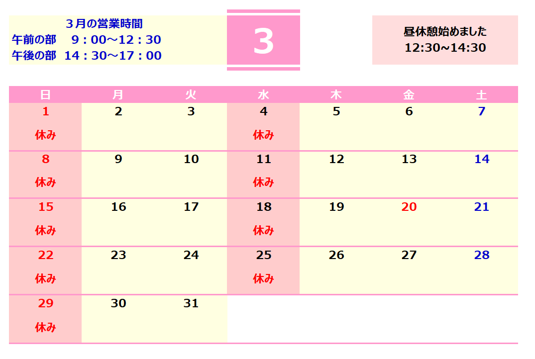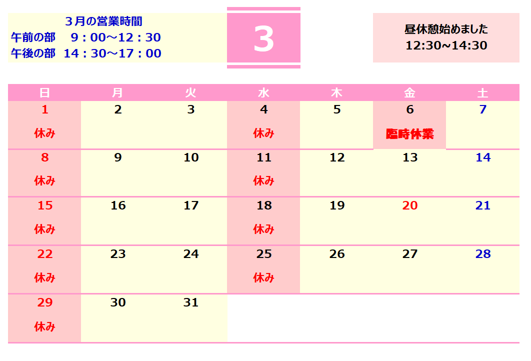 営業日時のご案内